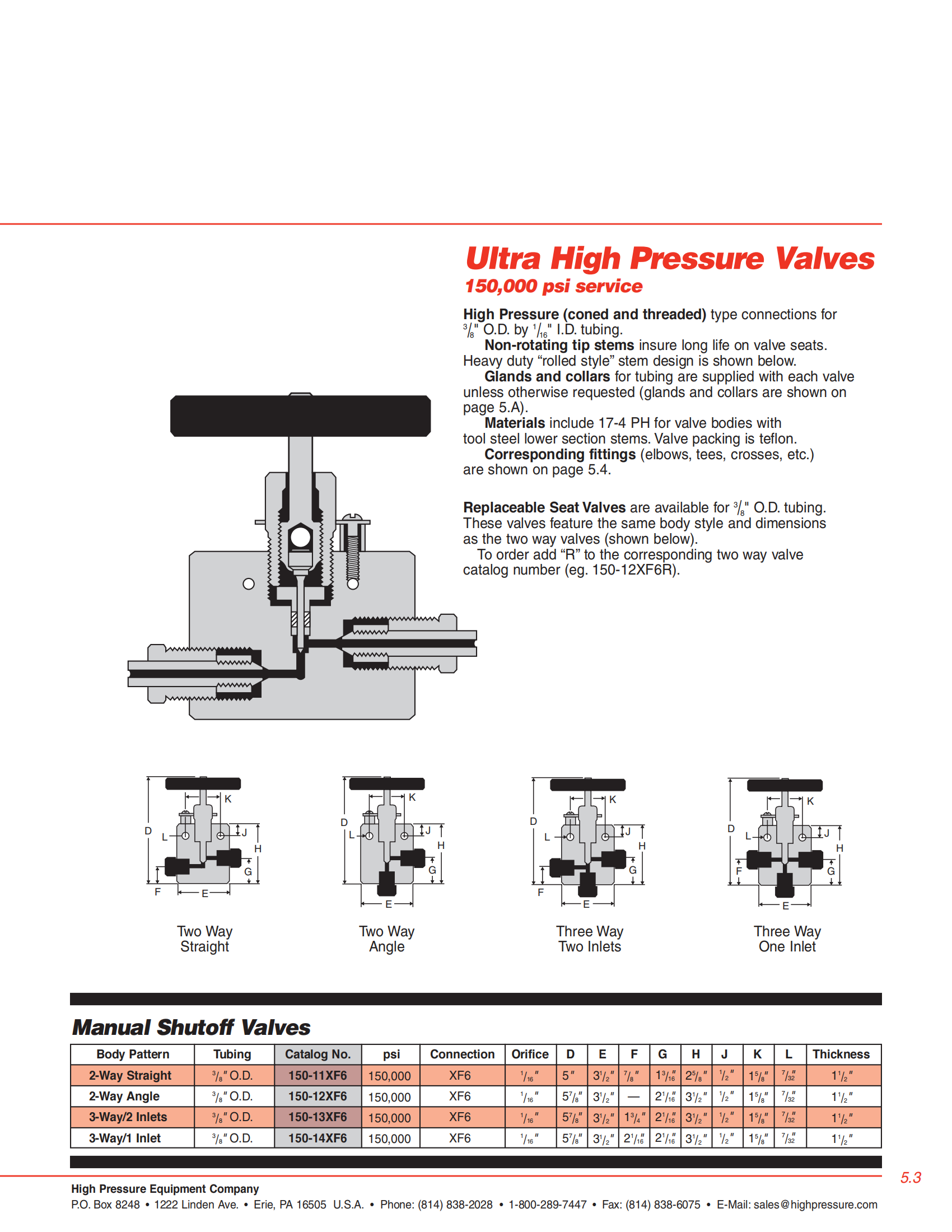 用于管道100,000PSI和150,000PSI。這些針閥,配件,止回閥,管和接頭